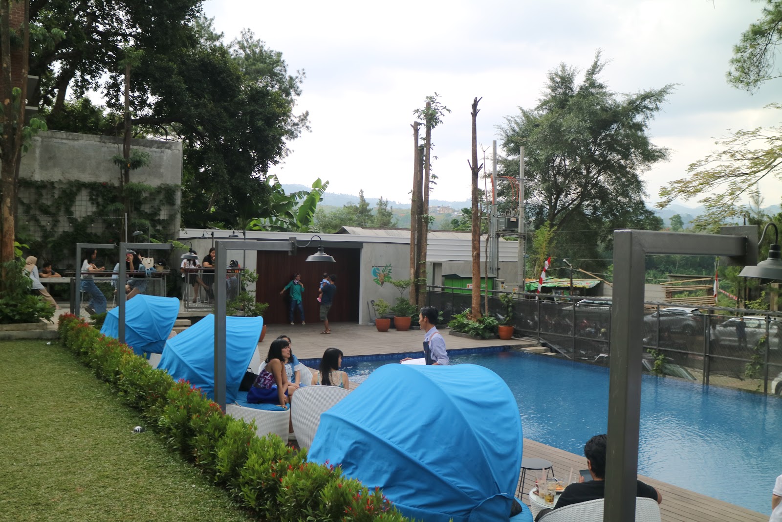 Tempat hits baru di Bandung ini telah mencuri hati netizen. Kalpa Tree ini memiliki konsep yang unik karena memiliki tempat duduk yang cozy di tengah kolam renang. Kamu juga bisa memilih nih mau bersantai di dalam ruangan atau diluar ruangan. Jadi, tidak perlu takut jika kehujanan kamu tetap bisa bersantai di dalam ruangan.